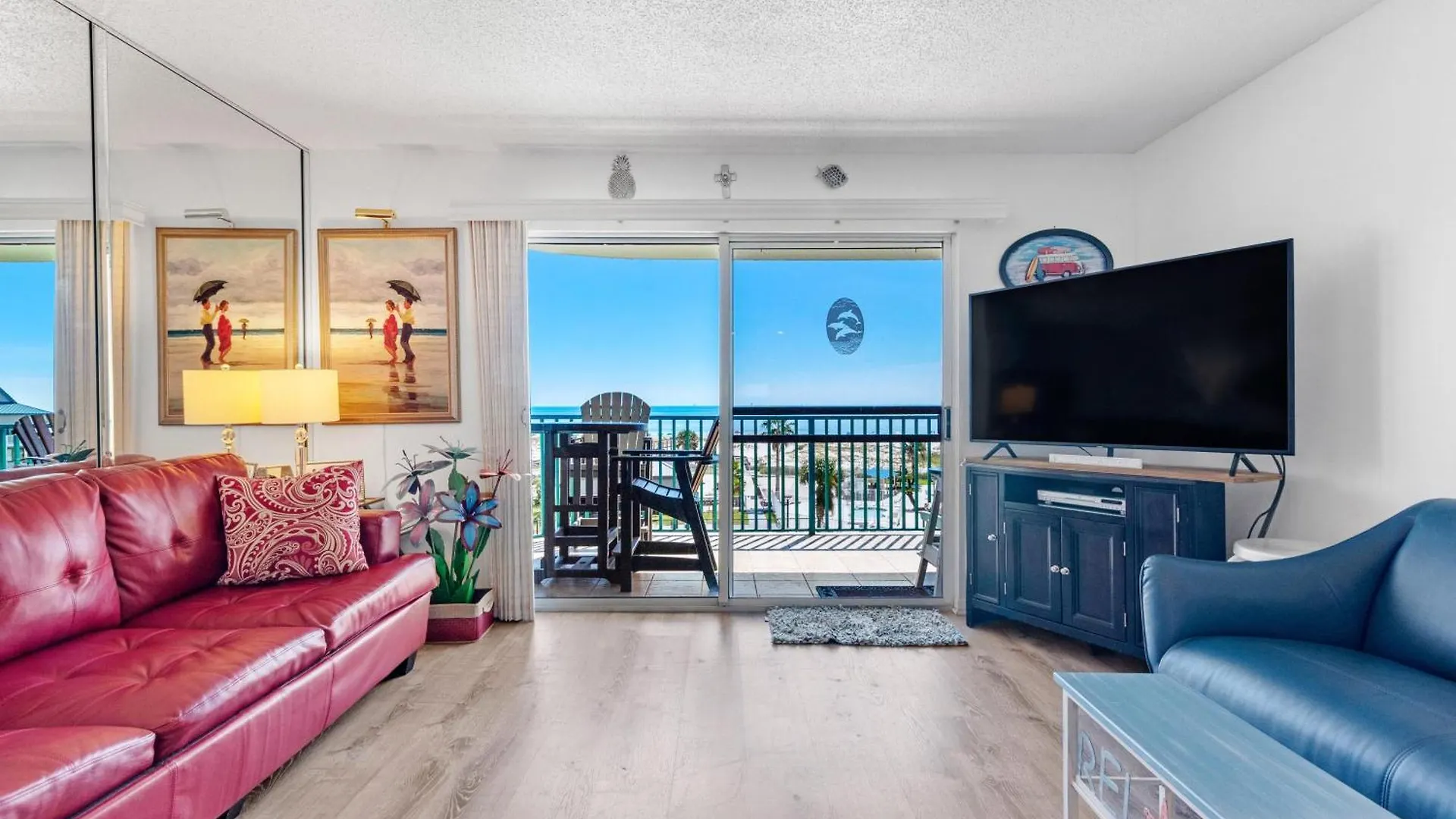 De 1-slaapkamer Gulf Shores Plantation-Palms 6405 villa kijkt uit over de zee. De accommodatie beschikt over een badkamer met een apart toilet en een douche. Een droger en handdoeken zorgen ook voor een comfortabele ervaring.